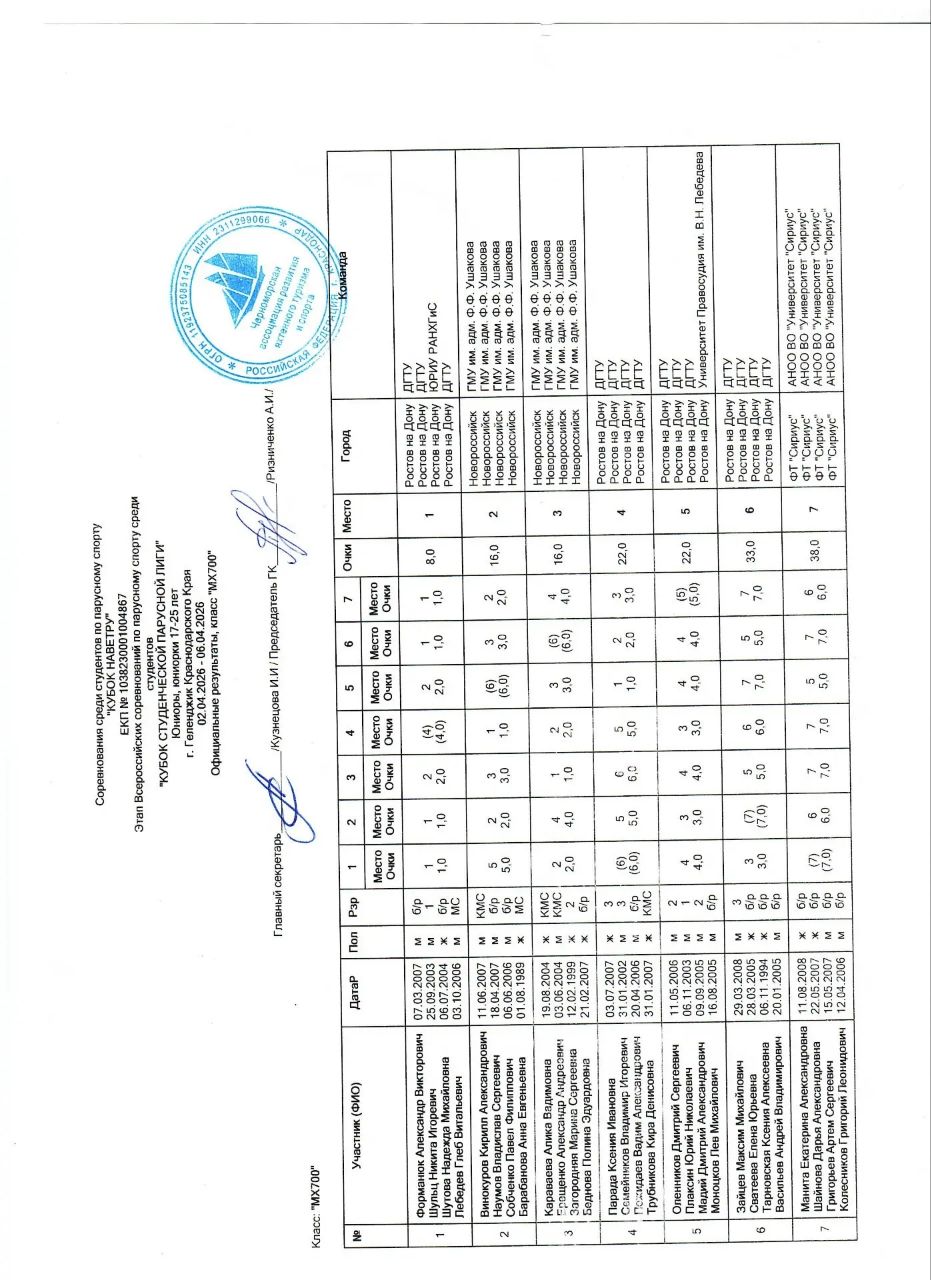 Официальные результаты Кубок Студенческой Парусной Лиги , Этап "Кубок Наветру"