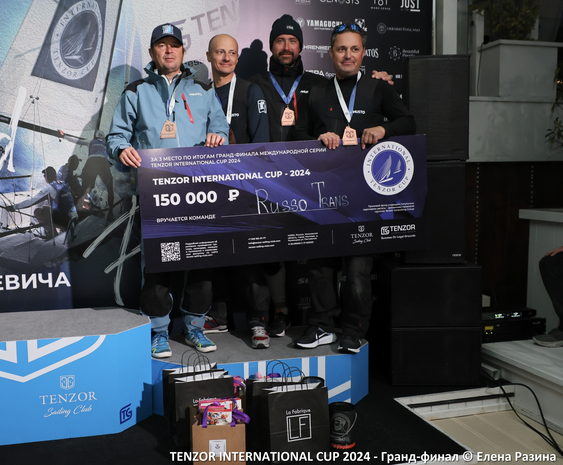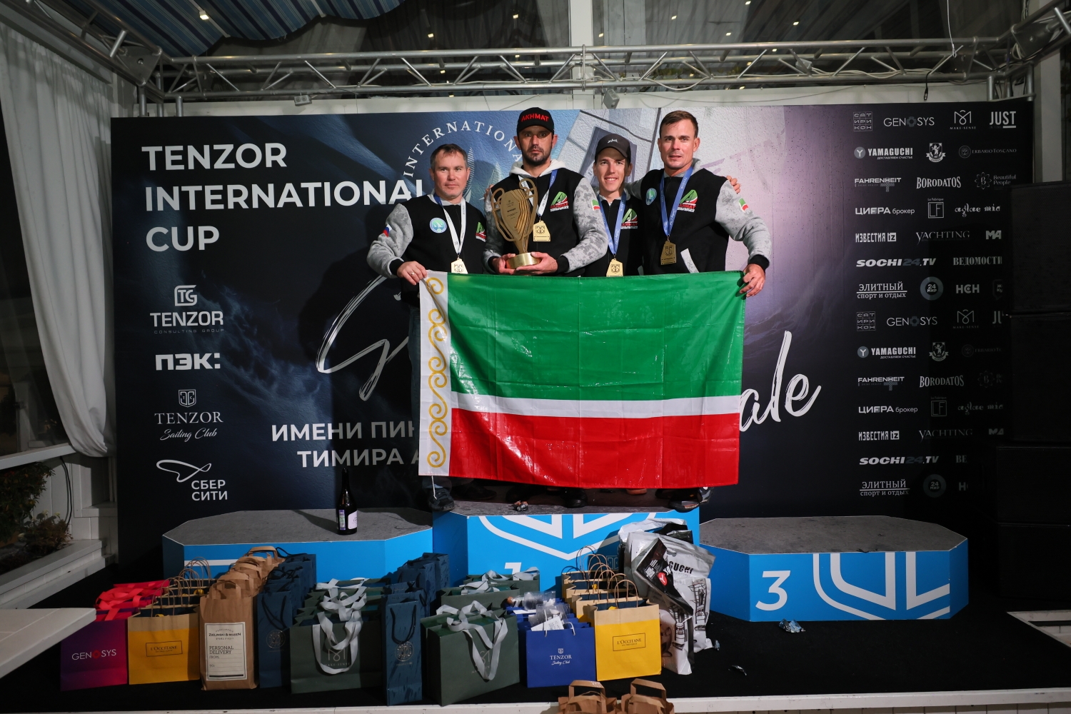 Церемония награждения стала красивым завершением турнира Tenzor International Cup 2024 - самого масштабного и знакового соревнования в классе MX700.Первыми на подиум вышли победители и призеры гранд-финала - команды "АХМАТ", Bars Sailing Team и Russo Trans.Они получили свои заслуженные призы и награды: денежные чеки призового фонда гранд-финала в размере 800 тысяч рублей от генерального партнера серии – финансово-правовой группы компаний Tenzor Consulting Group, а также множество подарков от партнеров этапа - “Цифра брокер”, YAMAGUCHI, Л’ОКСИТАН, Aglae Michon Knitwear, MAKE SENSE, «Аромат Дома», Zielinski & Rozen, «Красивые Люди», JUST IN TIME, GENOSYS, La Fabrique, Fahrenheit, театр «Сатирикон» им. Аркадия Райкина, «ПУРПУР», «Народные промыслы».