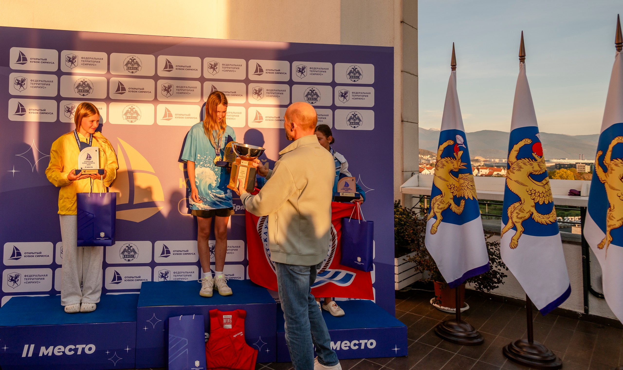 22 ноября в панорамном ресторане «Библиотека» состоялась торжественная церемония награждения победителей и призеров соревнования. Памятные призы вручали глава федеральной территории Сириус Дмитрий Сергеевич Плишкин и руководитель парусного центра Наталья Владимировна Иванова.