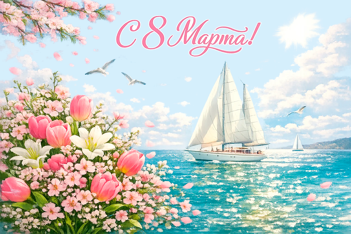 Вы, наши дорогие дамы, — это не только сила и красота, но и источник энергии и целеустремлённости, помогающий нам вместе развивать парусный спорт. Ваше стремление покорять горизонты вдохновляет и мотивирует, привнося свет и уверенность в наши сердца.